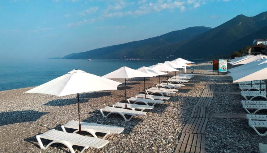В 250 метрах от корпуса находится оборудованный пляж с песчано-галечным покрытием. На пляже есть кабинки для переодевания, зонты, шезлонги и бар, что позволяет гостям наслаждаться отдыхом.